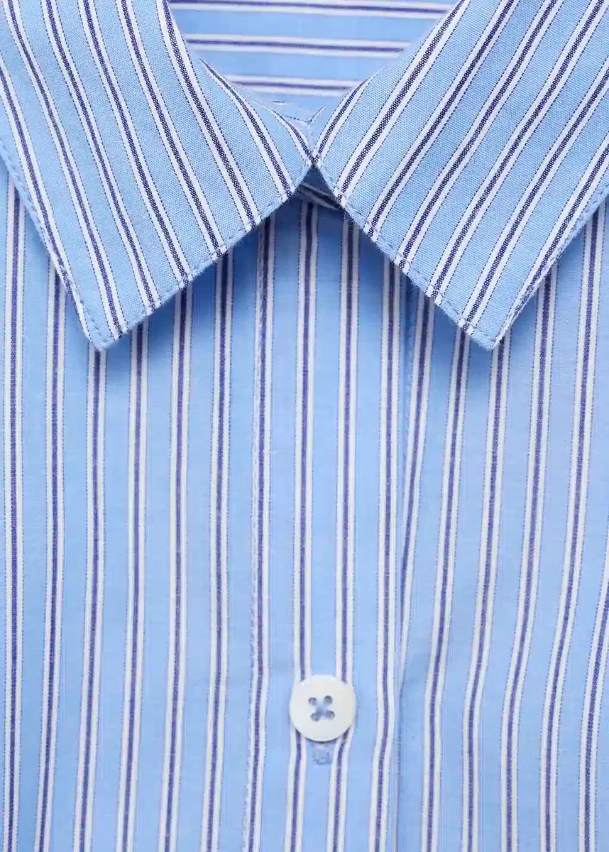 Tento oděv je vyroben ze 100% organické bavlny a má pruhovanou látku a oversized střih. Má košilový límec, dlouhé rukávy s manžetami na knoflíky a zapínání na knoflíky vpředu, což je ideální pro celkový vzhled.
