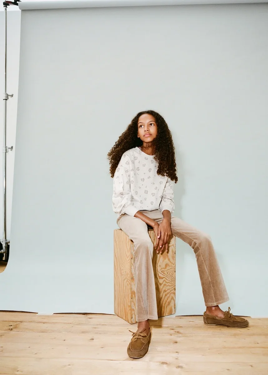 100% bavlna. Potisk zvířecí motivy. Leopardí potisk. Rovný střih. Kulatý výstřih. Dlouhé rukávy. Žebrovaný výstřih, manžety a lem.