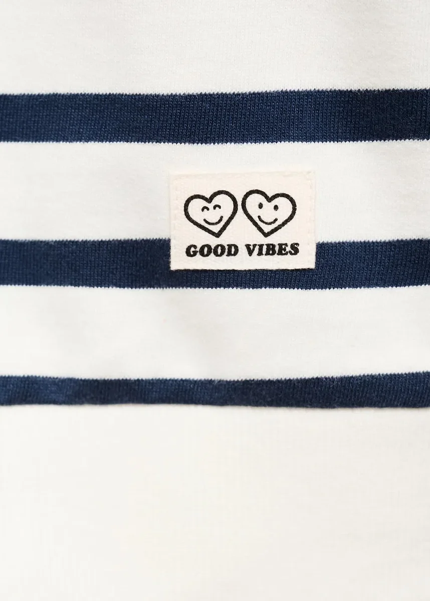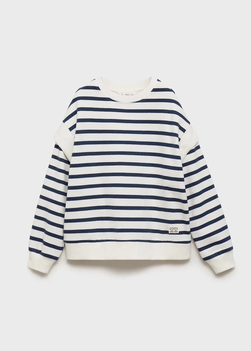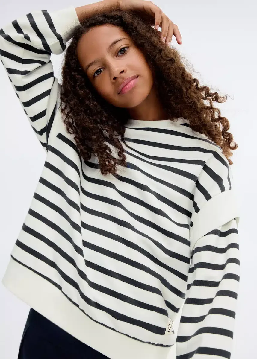 100% bavlna. Pruhovaná látka. Rovný střih. Kulatý výstřih. Dlouhé rukávy. Ozdobná nášivka. Žebrovaný výstřih, manžety a lem. Black Friday.