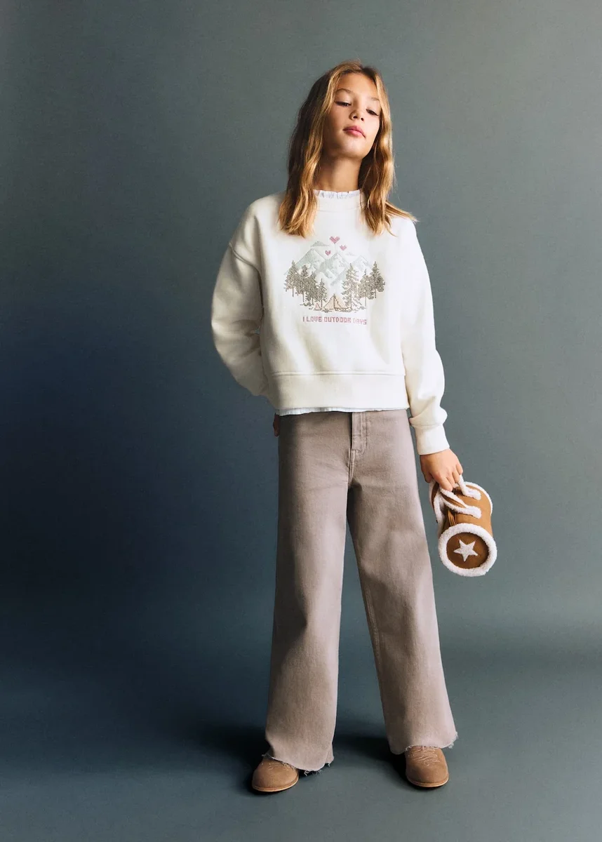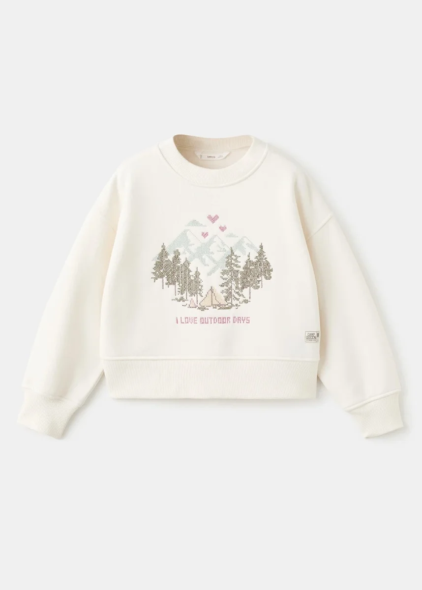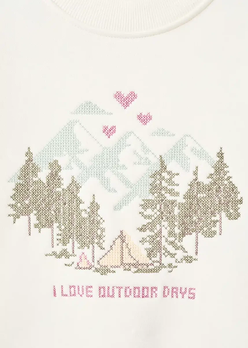 Bavlněná tkanina. Žakárový design. Rovný střih. Ozdobná výšivka. Výšivka na přední straně. Kulatý výstřih. Dlouhé rukávy. Žebrovaný výstřih, manžety a lem.