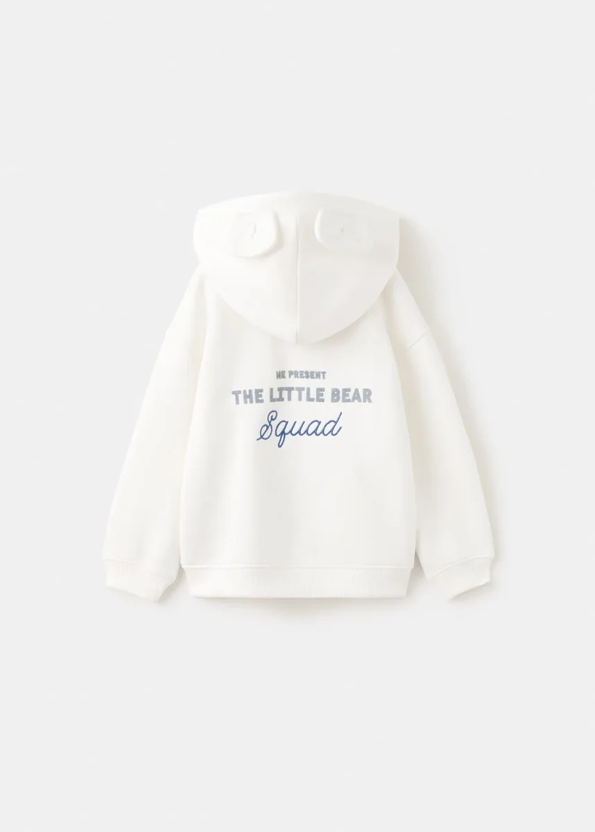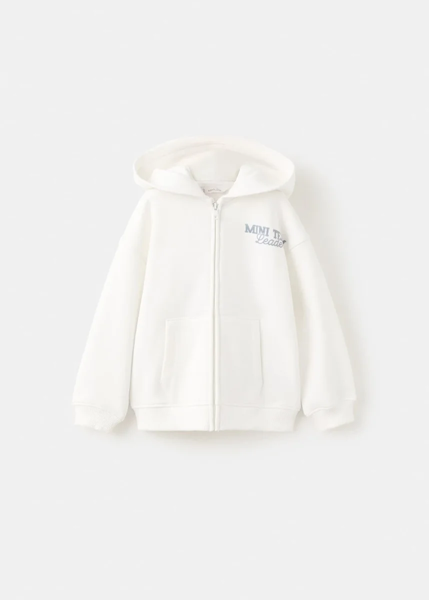 100 % bavlna. Rovný střih. S kapucí. Dlouhé rukávy. Zapínání na zip vpředu. Potisk na zadní straně. Textový potisk na přední straně. Černý pátek