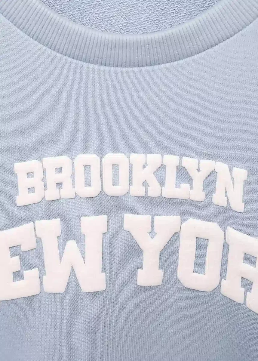 100 % bavlna. Rovný střih. Potisk. Text na přední straně. Potisk na zadní straně. Kulatý výstřih. Dlouhé rukávy