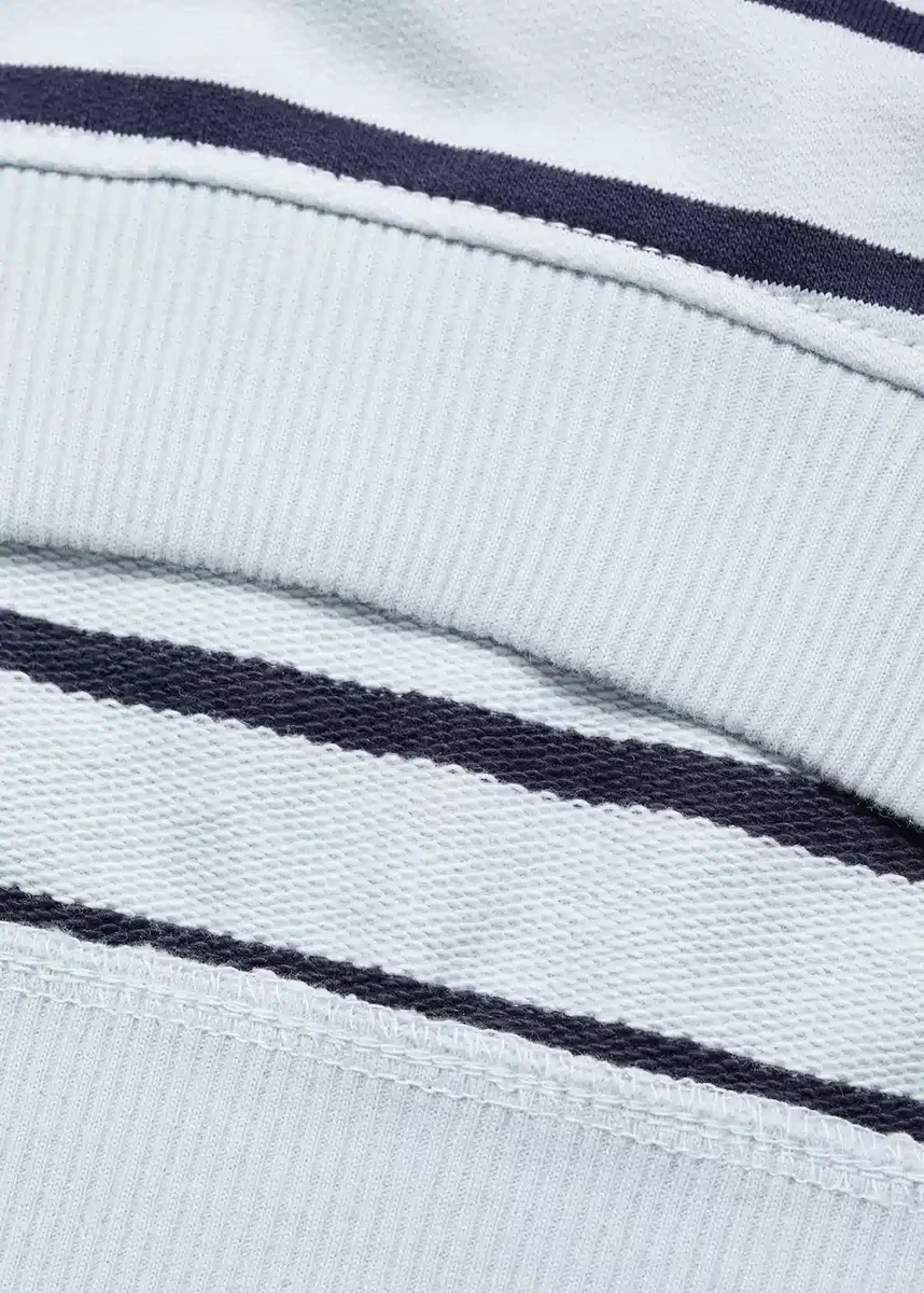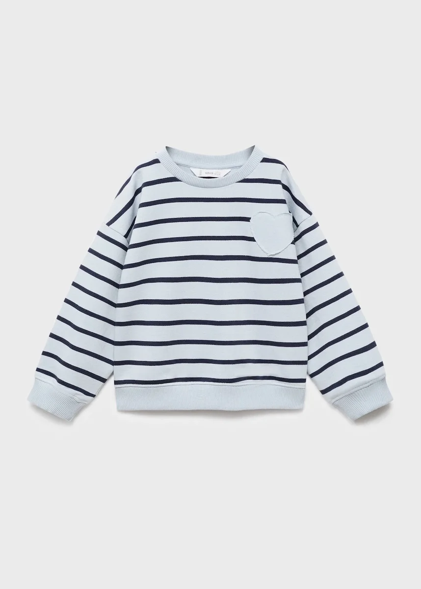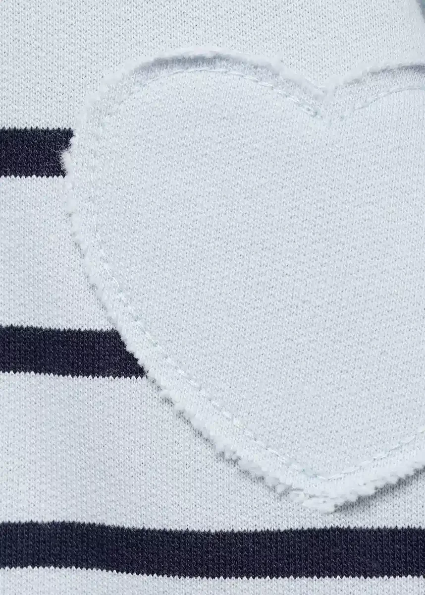 100% bavlna. Pruhovaná látka. Rovný střih. Kulatý výstřih. Dlouhé rukávy. Vyšívané srdce na hrudi. Žebrovaný výstřih, manžety a lem.