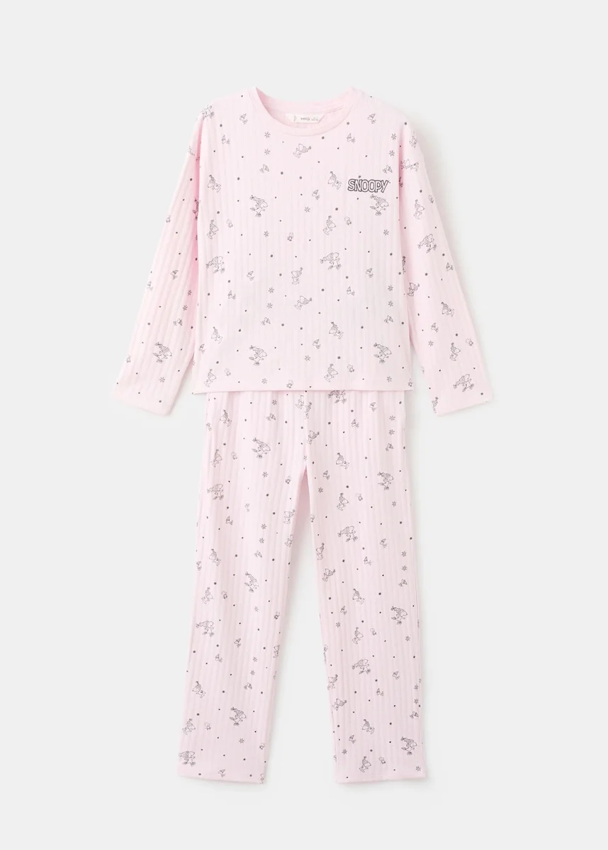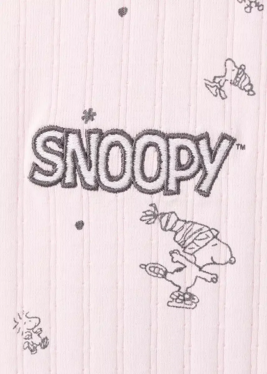 Bavlněná tkanina. Pružná tkanina. Potisk Snoopy. Design Snoopy. Dlouhý střih. Vyšívaný design. Elastický pas.