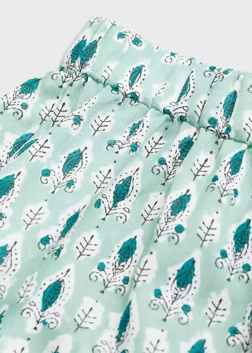 Sada trička a pyžamových kalhot. 100 % bavlna. Krátký střih. Rovný střih. Potisk. Rovný výstřih. Bez rukávů. Tenké ramínka. Bez zapínání. Elastický pas. Vyšívané detaily. Volánový lem