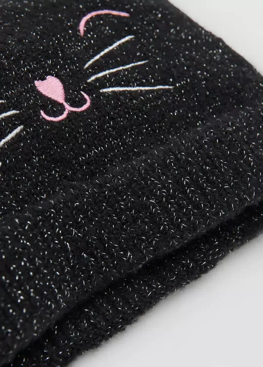 Lurexová tkanina. Zářivý design. Design s ušima. Design s kočičkami. Ohrnutý lem. K dispozici jako sada. Kolekce Halloween