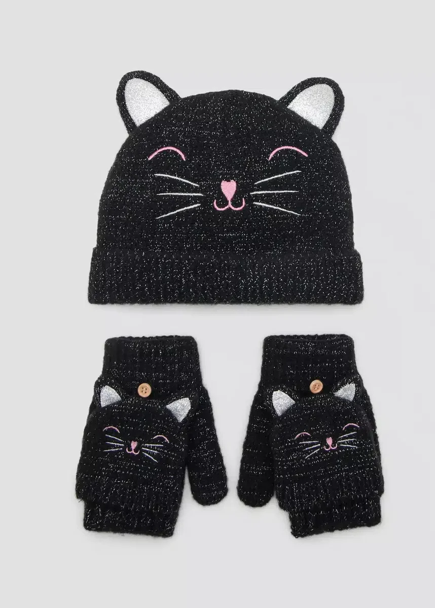Lurexová tkanina. Lesklý design. Design s ušima. Design s kočičkou. Ohnutý detail. K dispozici jako set. Halloweenová kolekce.