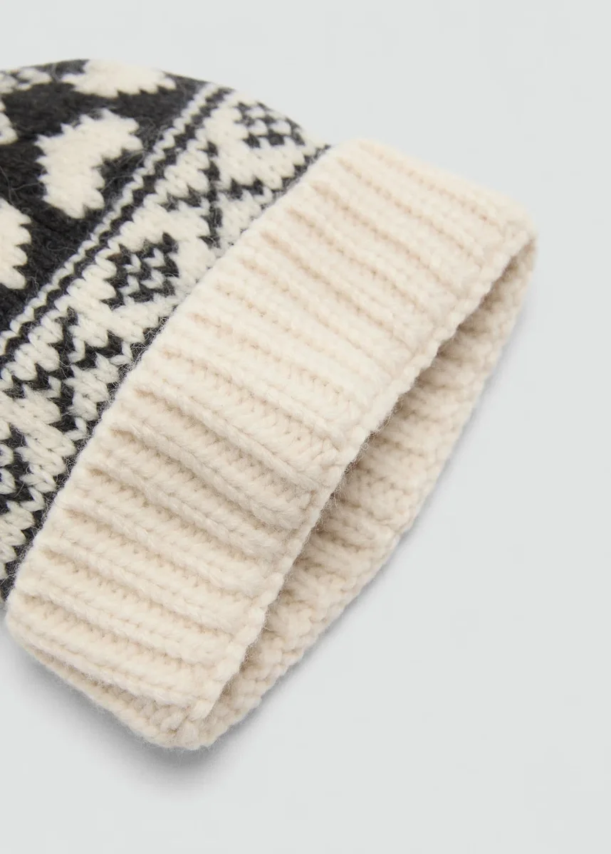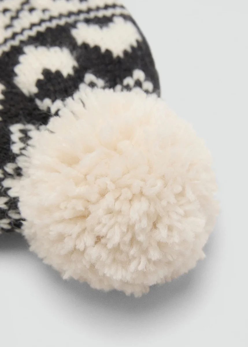Pletená látka. Střapcový detail. Ohrnutý detail. K dispozici jako set. K této čepici je k dispozici ladící šála. Vánoční kolekce.