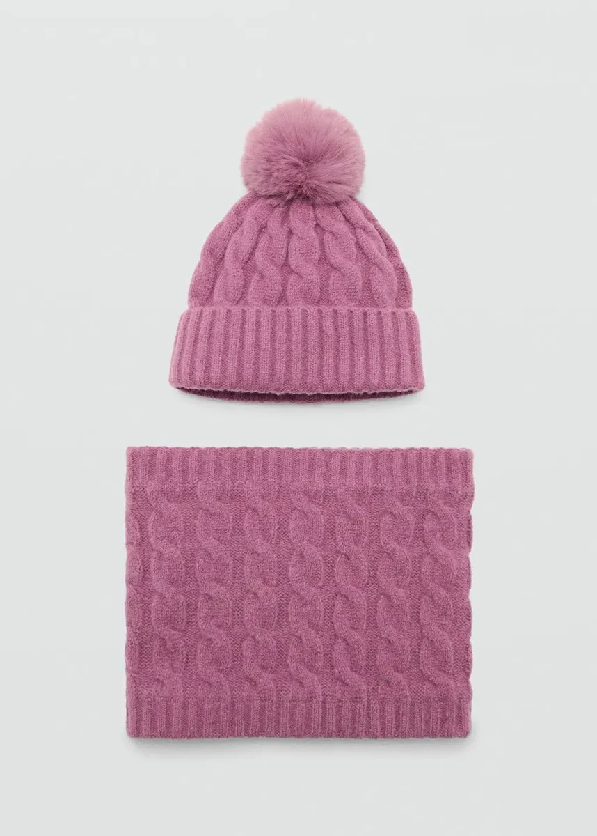 Pletená látka. Pletený vzor. Střapcový detail. Ohnutý lem. K dispozici jako set. K této čepici je k dispozici ladící šála. Vánoční kolekce
