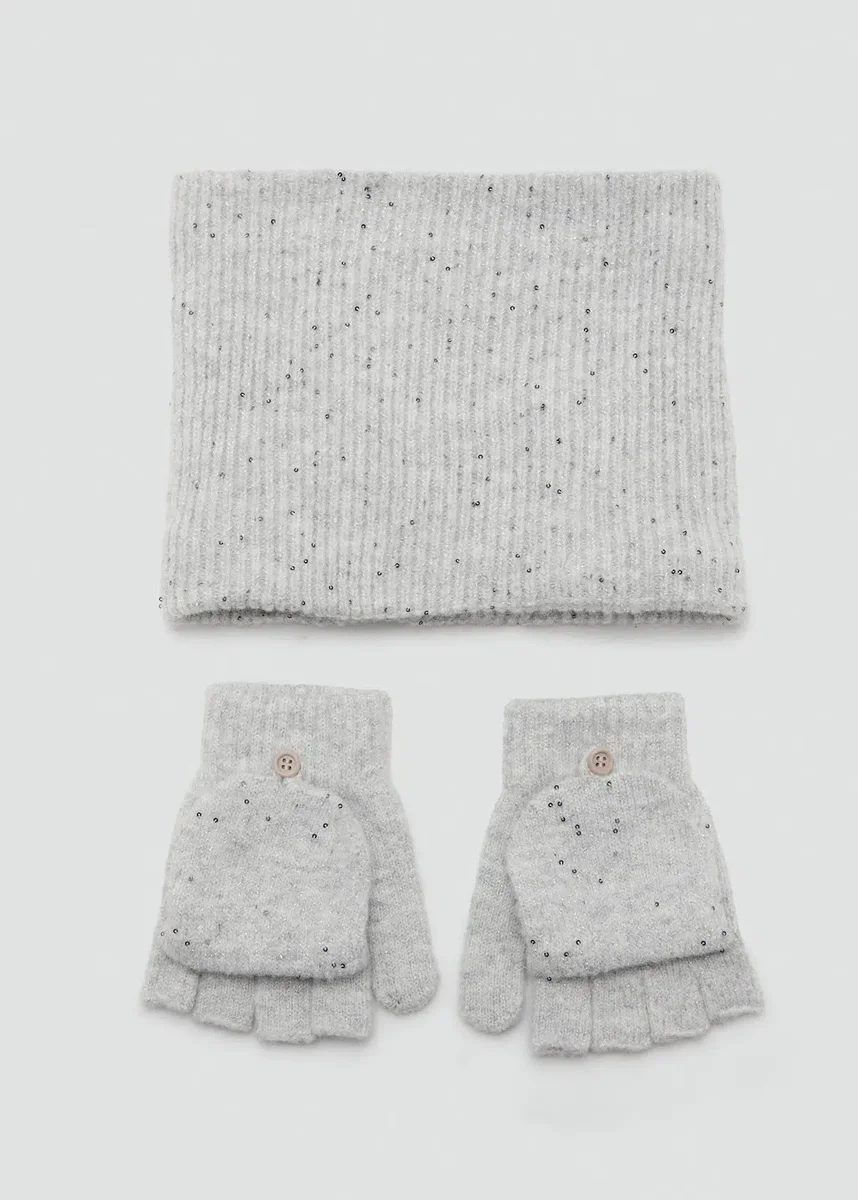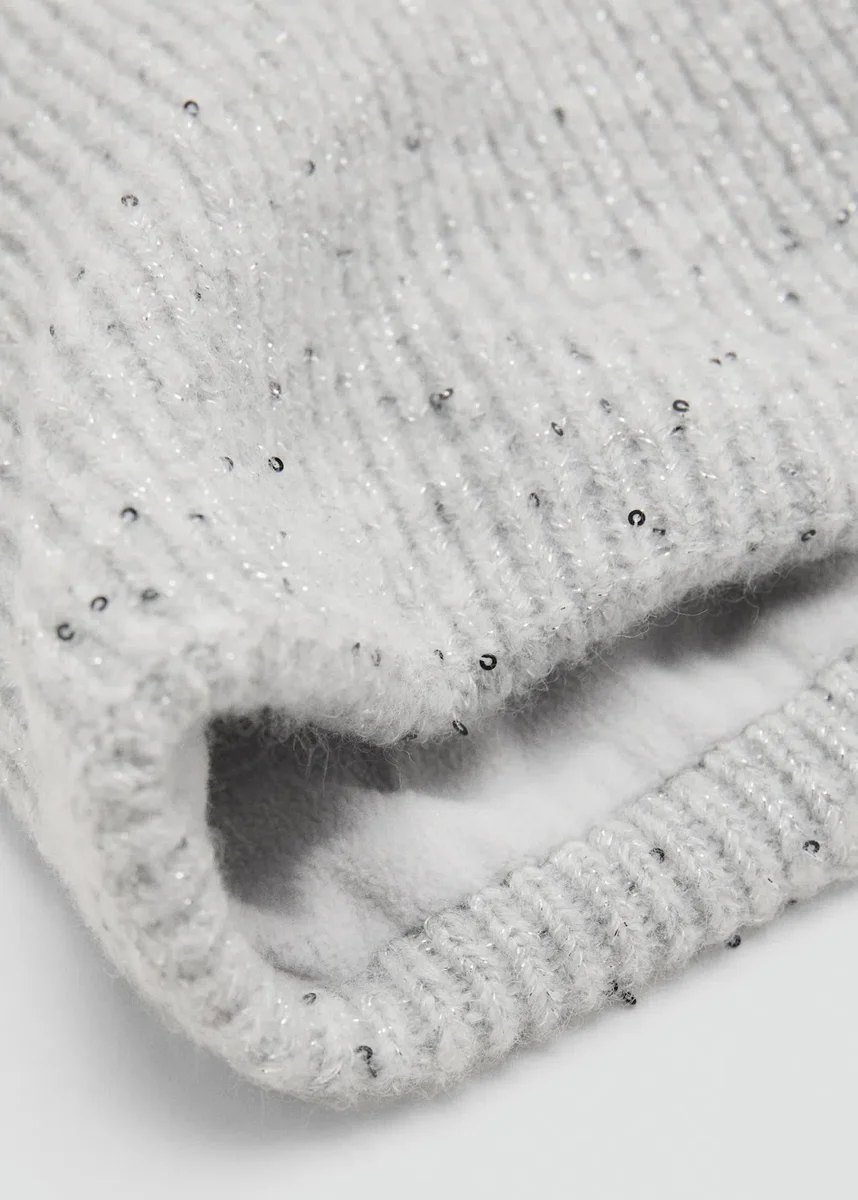 Pletená látka. Flitrové detaily. Rovný střih. Vnitřní podšívka z polar fleece. K dispozici jako set. Sladěná čepice, šála a rukavice. Vánoční kolekce. 9,45 x 7,87 palce