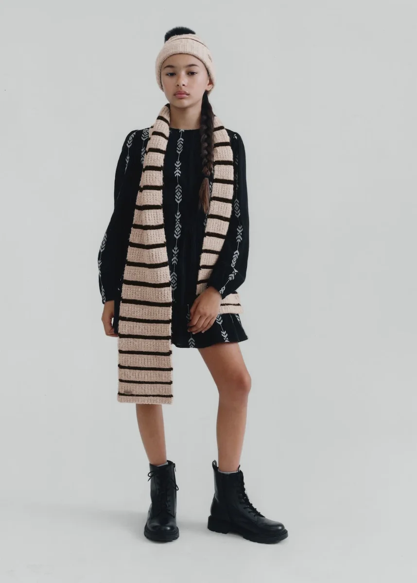 Pletená látka. Pruhovaný vzor. Dlouhý střih. K dispozici jako sada. Vánoční kolekce.