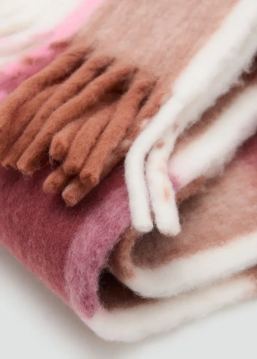 Pletená látka. Kostkovaný vzor. Třásně. Vánoční kolekce. Černý pátek.