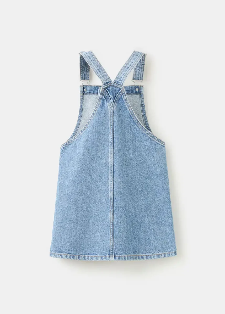 Dlouhá délka. Plochá struktura. 100% bavlna. Džínovina. Rovný střih. Krátký střih. Ozdobné knoflíky. Čtvercový výstřih. Ramínka se zapínáním na knoflíky. Nastavitelná ramínka. Zapínání na knoflíky na boku.