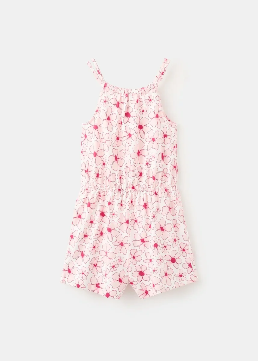 100% bavlna. Krátký střih. Květinový potisk. Kulatý výstřih. Tenká ramínka. Elastický stažený pas.