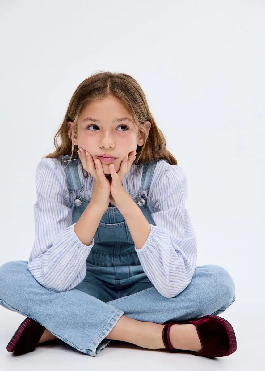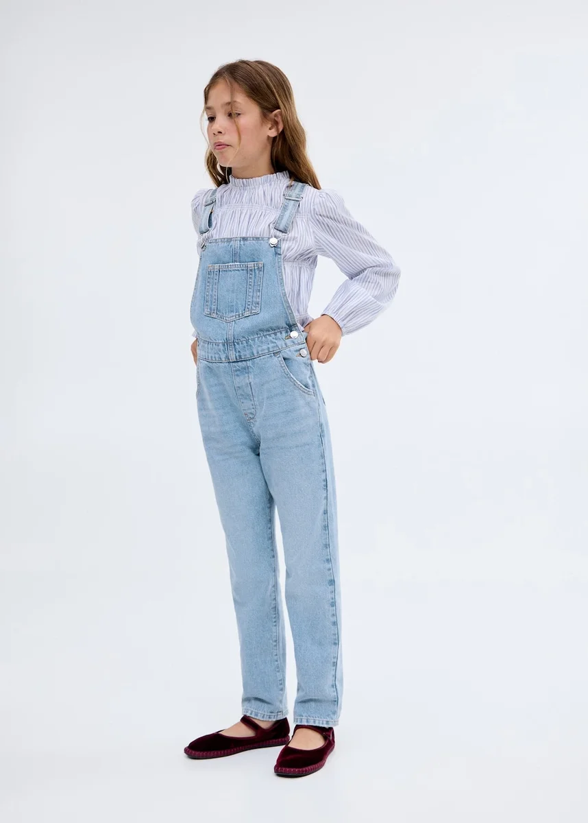 100% bavlna. Džínovina. Dlouhý střih. Rovný střih. Rovný výstřih. Nastavitelné ramínka. Zapínání na háčky. Zapínání na knoflíky na boku. Dvě boční kapsy. Nášivka na hrudi.