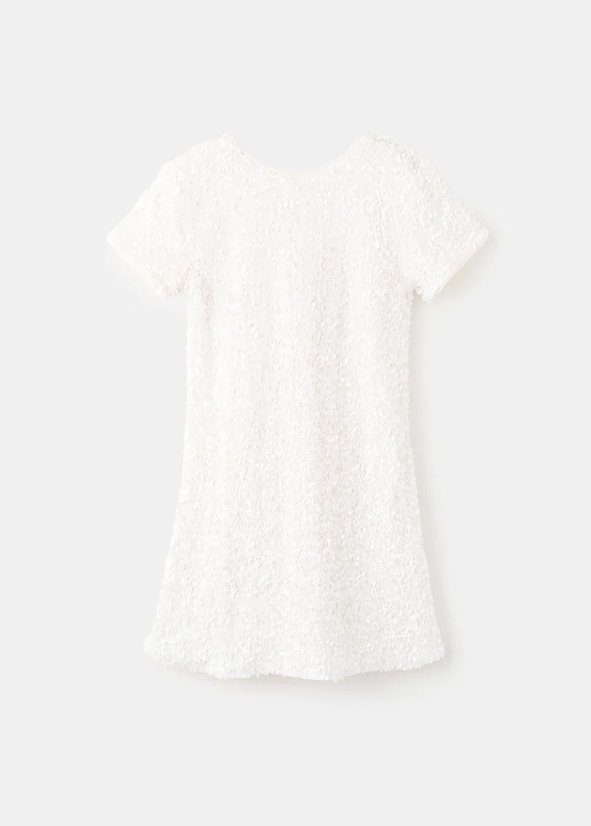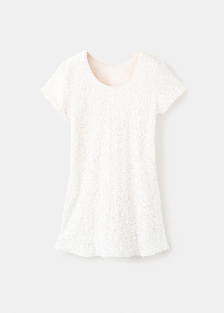 Tkanina s flitry. Střih do A. Zářivý design. Kulatý výstřih. Krátké rukávy. Kolekce pro večírky. Vánoční kolekce.p>