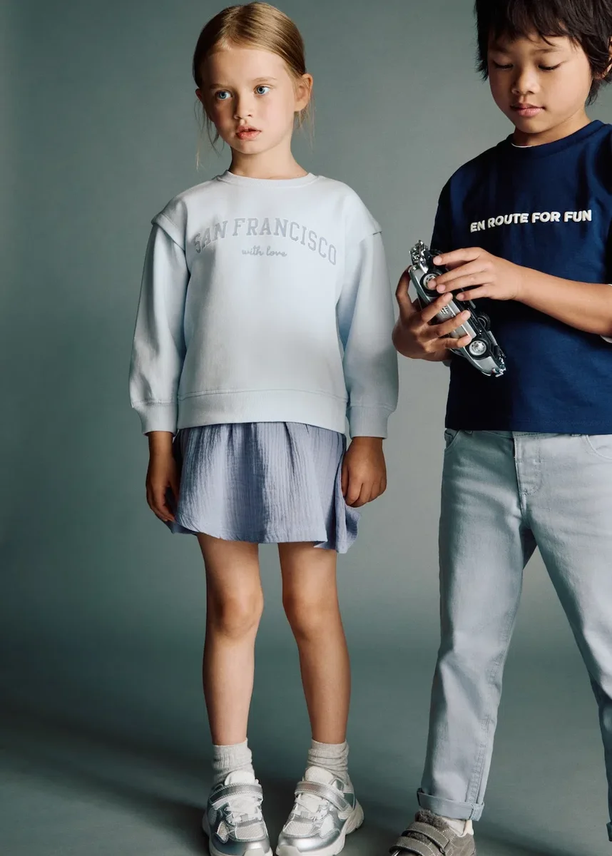 Bavlněná směsová tkanina. Střih do A. Krátký střih. Kombinovaný design. Potisk. Text na hrudi. Kulatý výstřih. Dlouhé rukávy s elastickými manžetami. Bez zapínání. Black Friday.