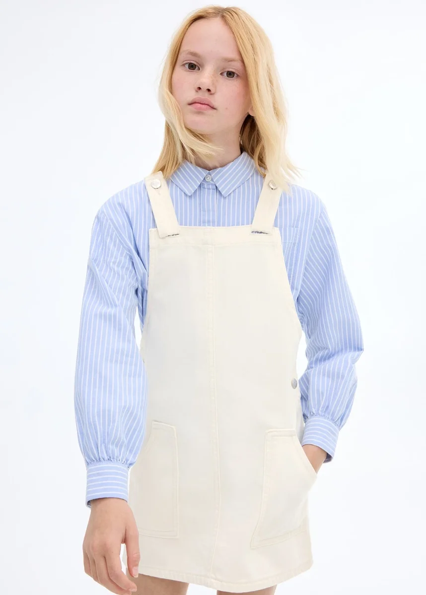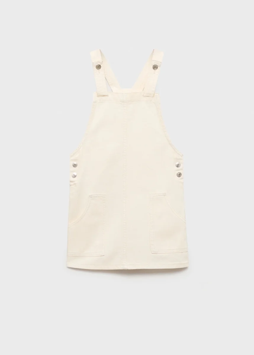 100% bavlna. Krátký střih. Džínový styl. Střih zástěry. Rovný výstřih. Ramínka se zapínáním na knoflíky. Bez rukávů. Dvě přední našité kapsy. Akční produkt.
