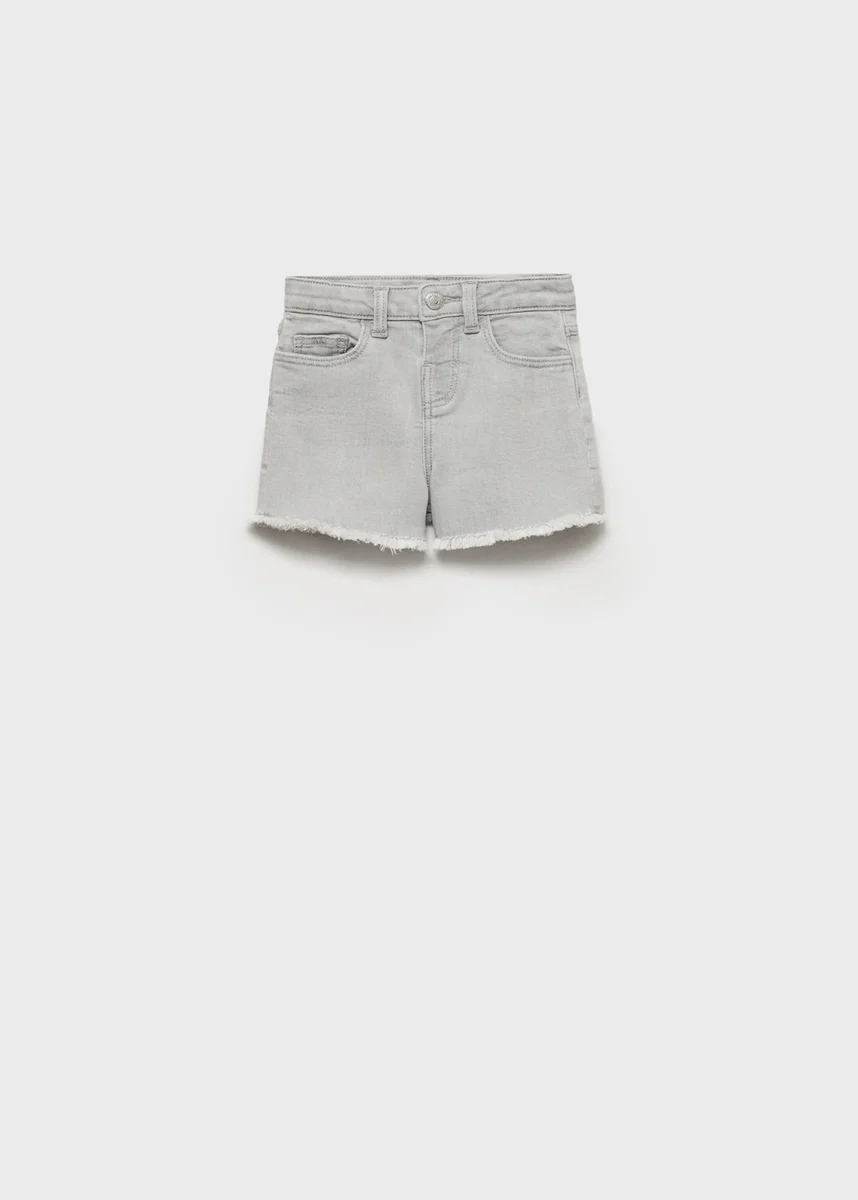Bavlněná denimová tkanina. Rovný střih. Krátký střih. Poutka na opasek. Tři přední kapsy. Dvě našité kapsy vzadu. Jedno zapínání na druk. Roztřepený lem