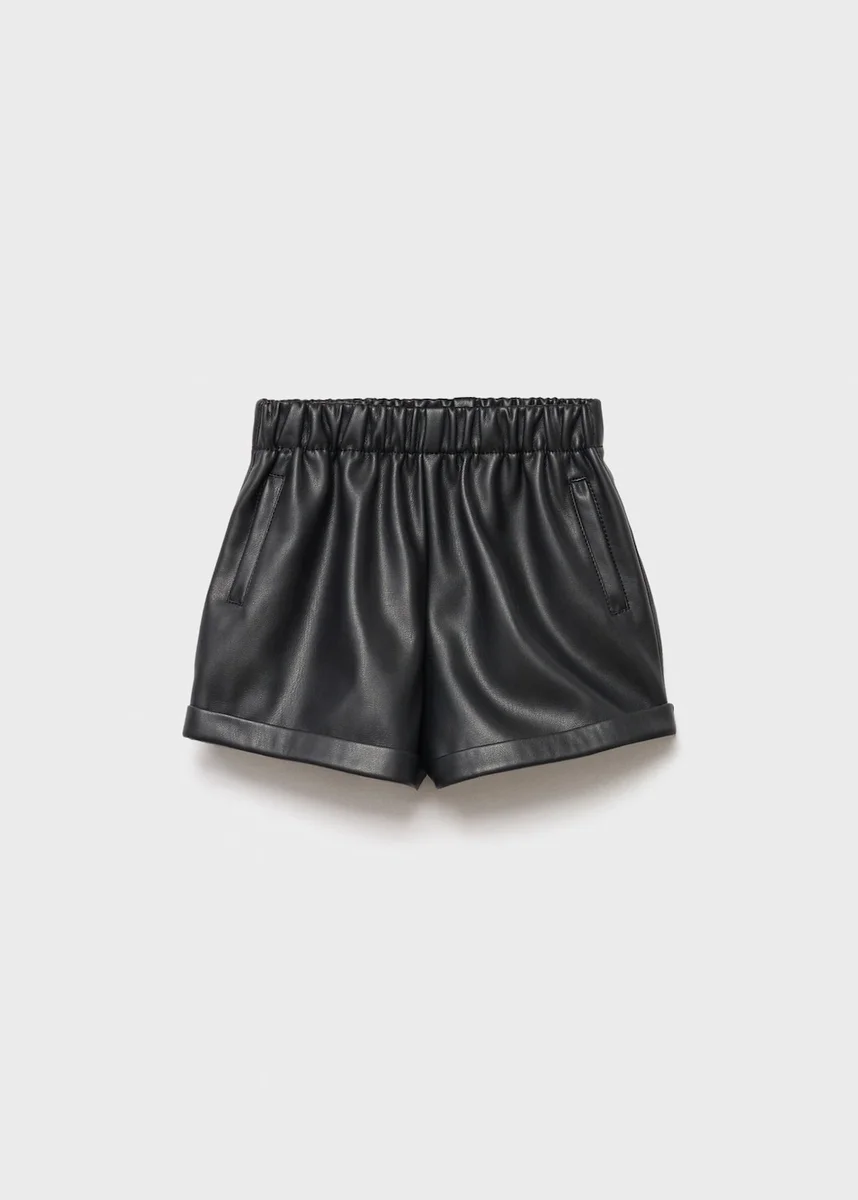Tyto šortky jsou vyrobeny z látky imitující kůži a mají nastavitelný elastický pas a řasený panel. Pro větší funkčnost jsou vybaveny dvěma bočními kapsami.