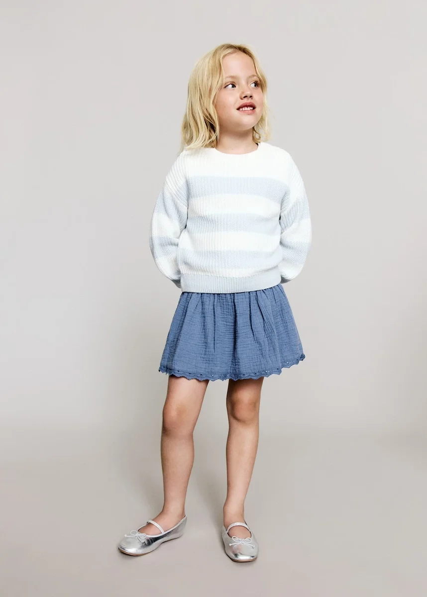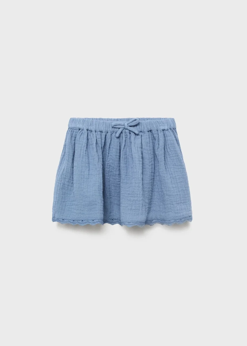 Tato sukně je vyrobena ze 100% texturované bavlny a má krátký střih do A. Pas je vybaven elastickou gumou a nastavitelnou stuhou pro větší pohodlí a lepší padnutí.