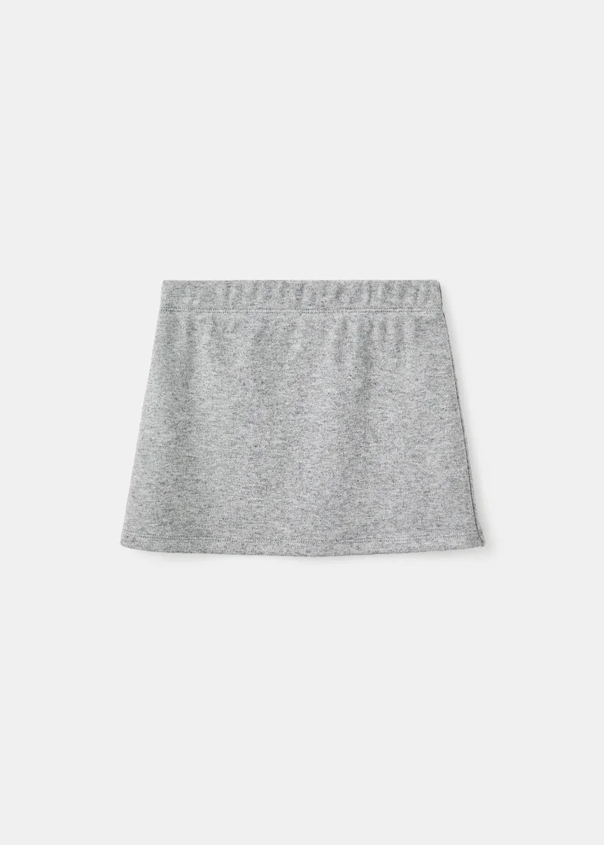 Tato sukně z pleteniny má krátký střih do A. Elastický pas zajišťuje pohodlí, zatímco absence zapínání a vnitřní podšívky jí dodává lehkost