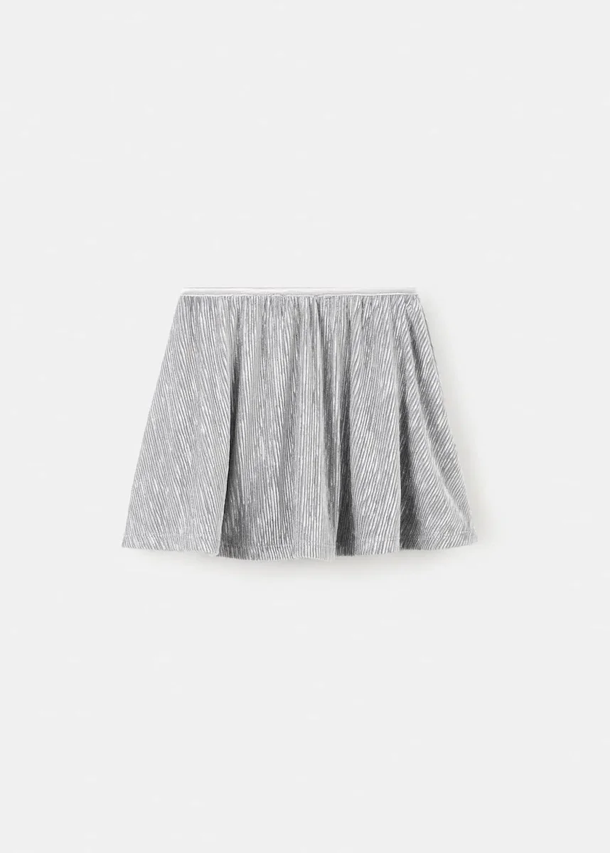 Plynulá látka. Lurexová tkanina. Metalická. Plisovaný design. Elastický pas. Nařasený detail v pase. Kolekce pro večírky. Vánoční kolekce