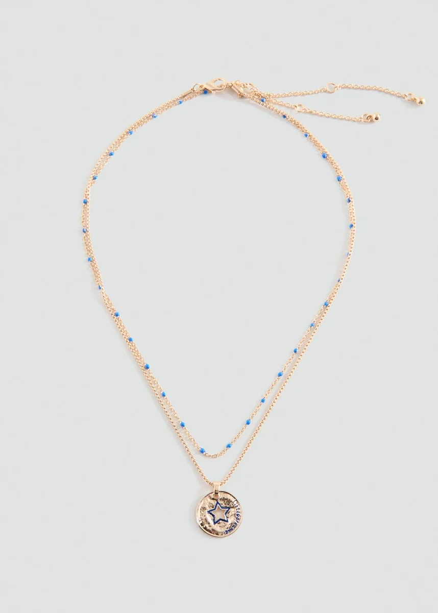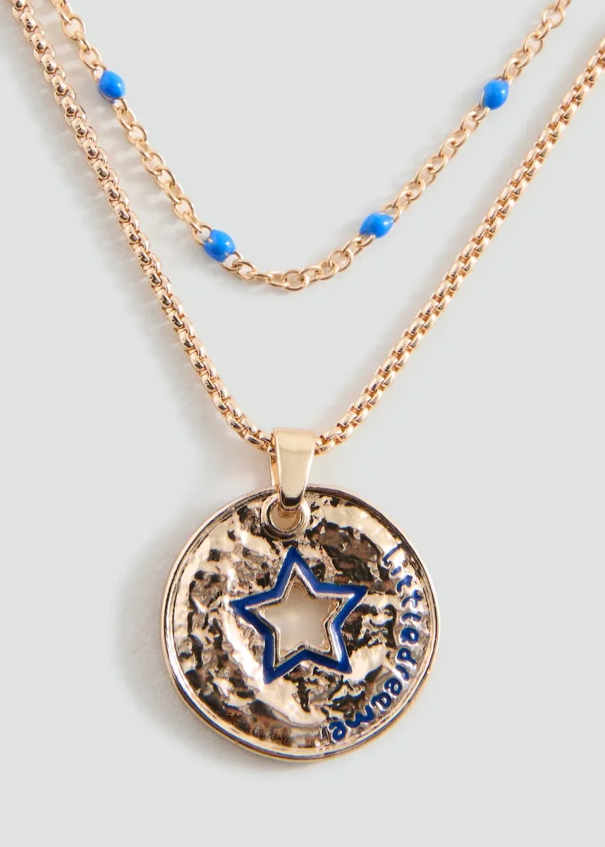 Balení po 2 kusech. Kovový design. Kruhový kovový korálkový přívěsek. Hvězdicový detail. Zapínání na karabinku.