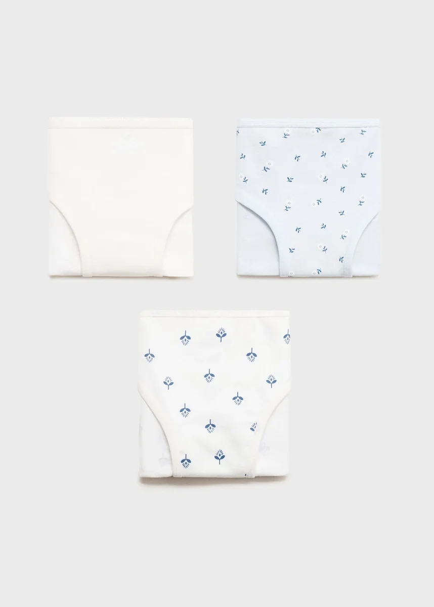Balení po 3 kusech. Bavlněná tkanina. Pružná tkanina. Potisk. Základní design. Elastický pas.