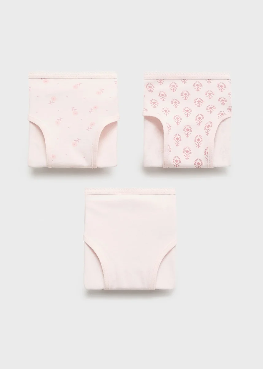 Balení po 3 kusech. Bavlněná tkanina. Pružná tkanina. Potisk. Základní design. Elastický pas.