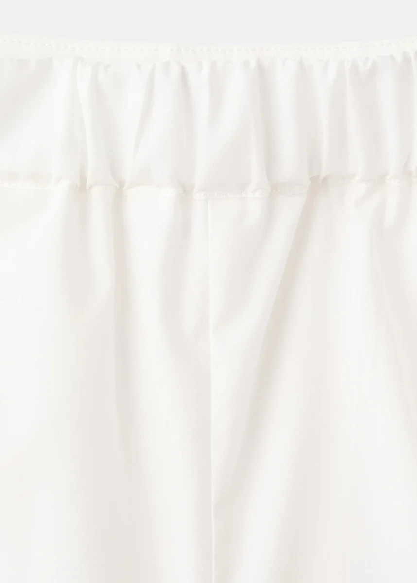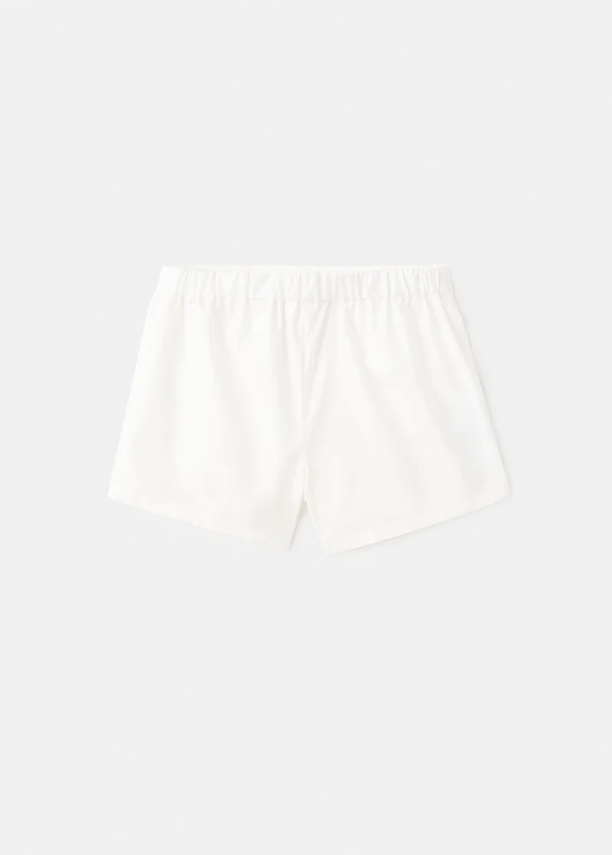 100% bavlna. Rovný střih. Krátký střih. Elastický pas. Nášivková kapsa vzadu.
