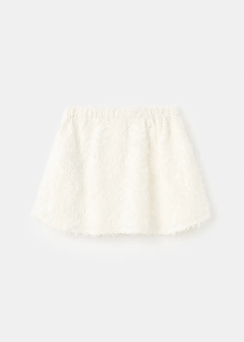 Tato sukně z polyesterové tkaniny má střih do A s třásněmi a flitrovými detaily. Elastický pas zajišťuje pohodlí. Je součástí vánoční a společenské kolekce.