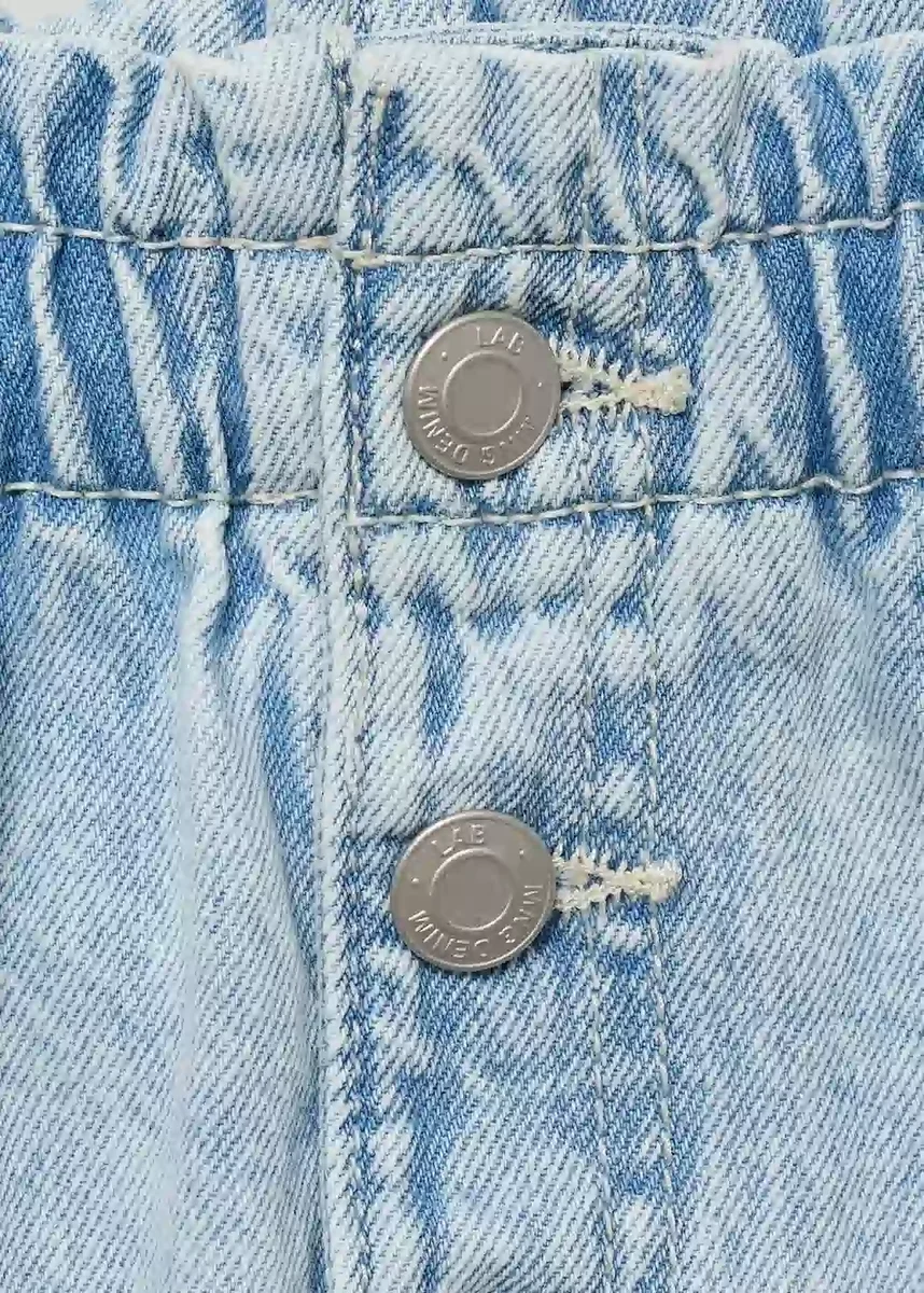 100% bavlna. Bavlněná džínovina. Rovný střih. Krátká délka. Poutka na opasek. Zapínání na knoflík vpředu. Kapsa na mince. Dvě boční kapsy. Nášivkové kapsy vzadu.