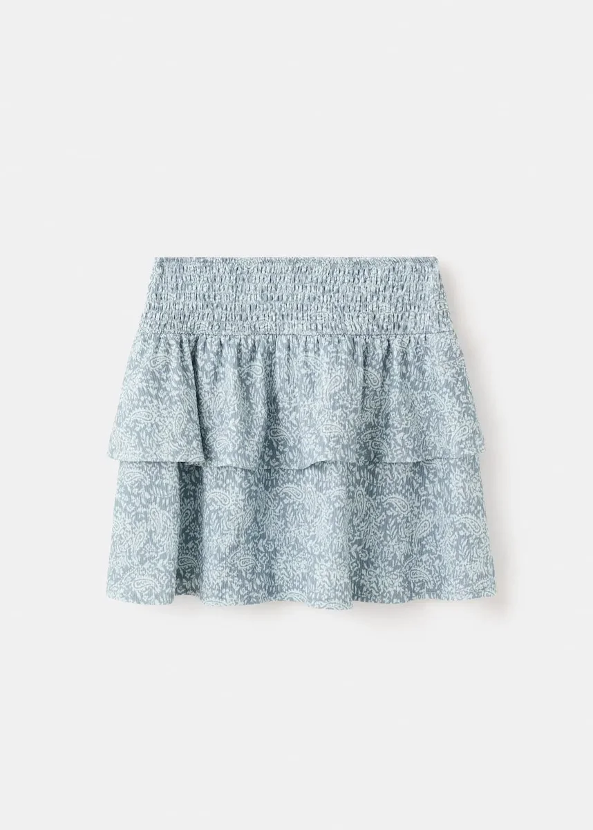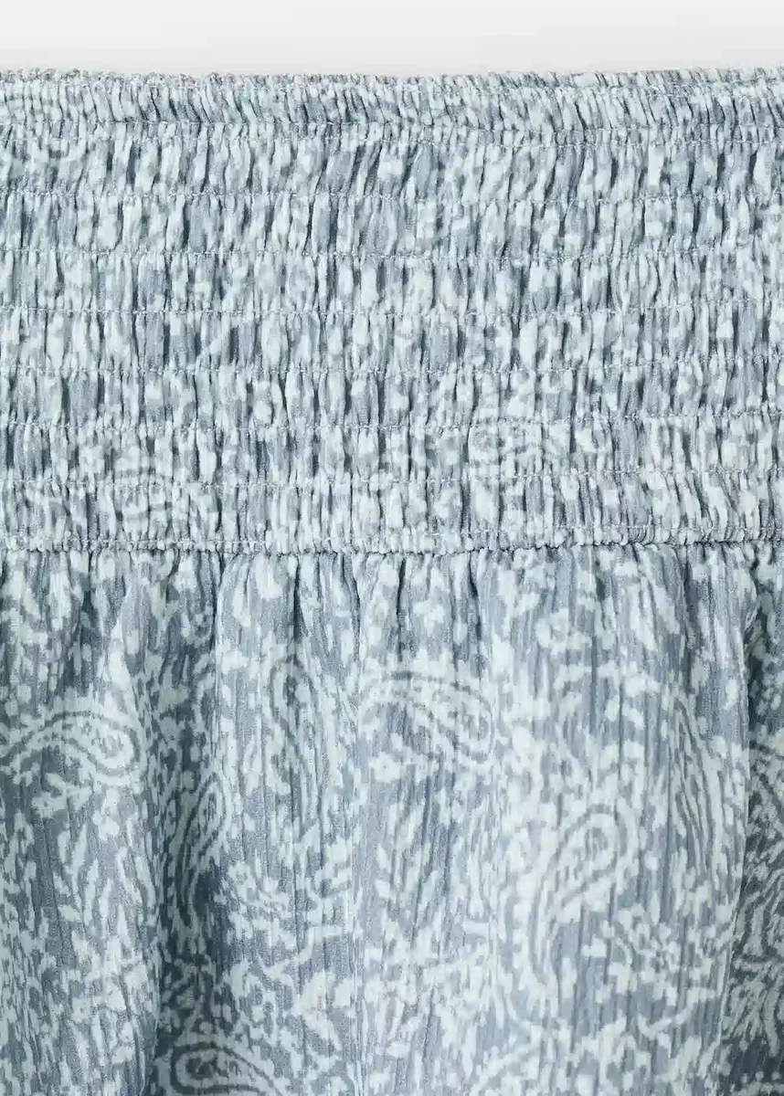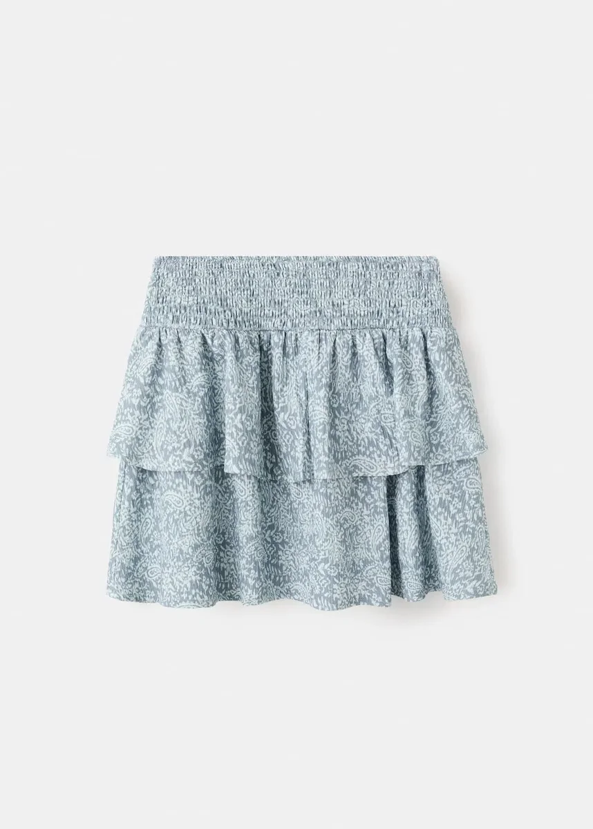 Polyesterová tkanina. Volánkový design. Střih do A. Elastický pas. Vzorec voštiny. Celkový vzhled