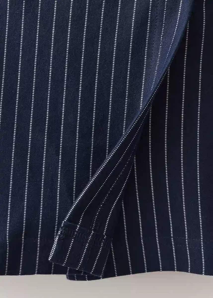 Bavlněná tkanina. Krátký střih. Sukně-kraťasy. Pruhovaný vzor. Elastický pas. Dvě boční kapsy.