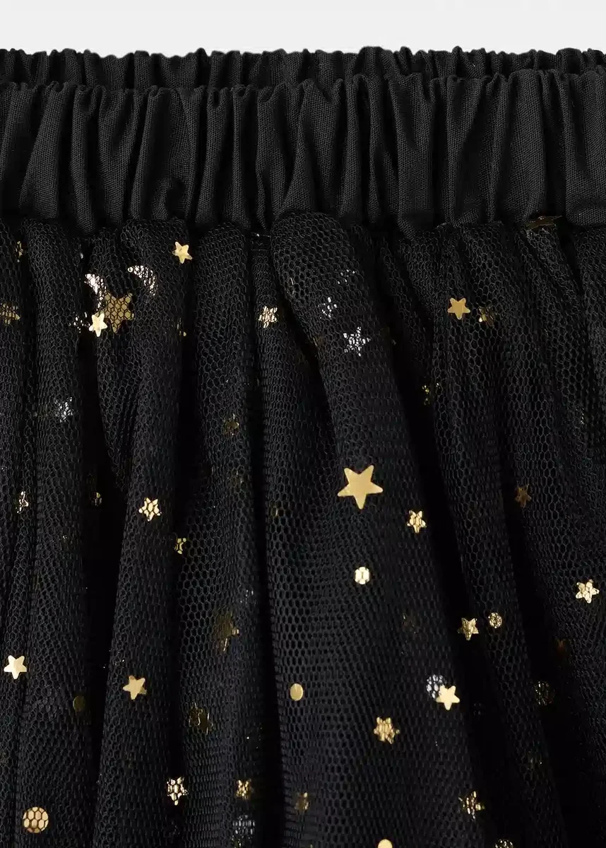 Tylová tkanina. Elastický pas. Hvězdicový vzor. Celkový vzhled. Vánoční kolekce. Párty kolekce