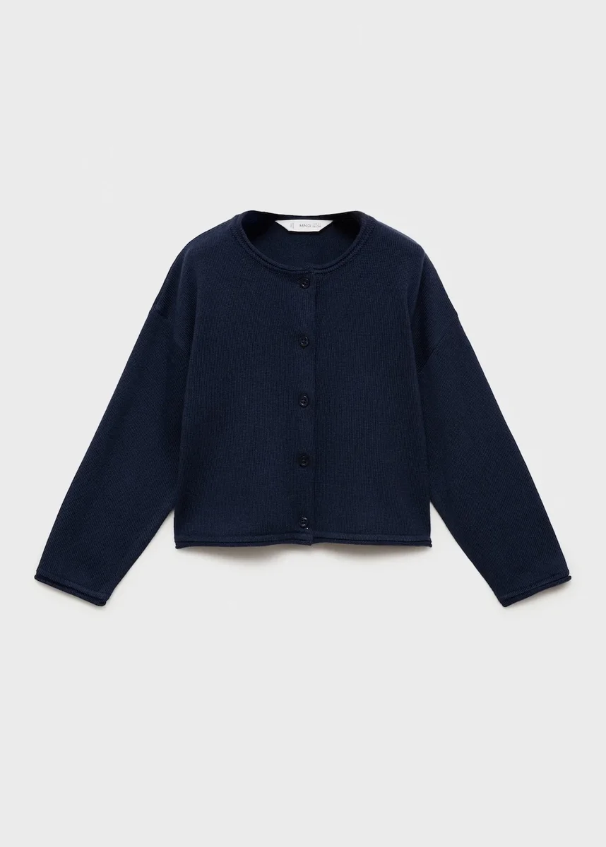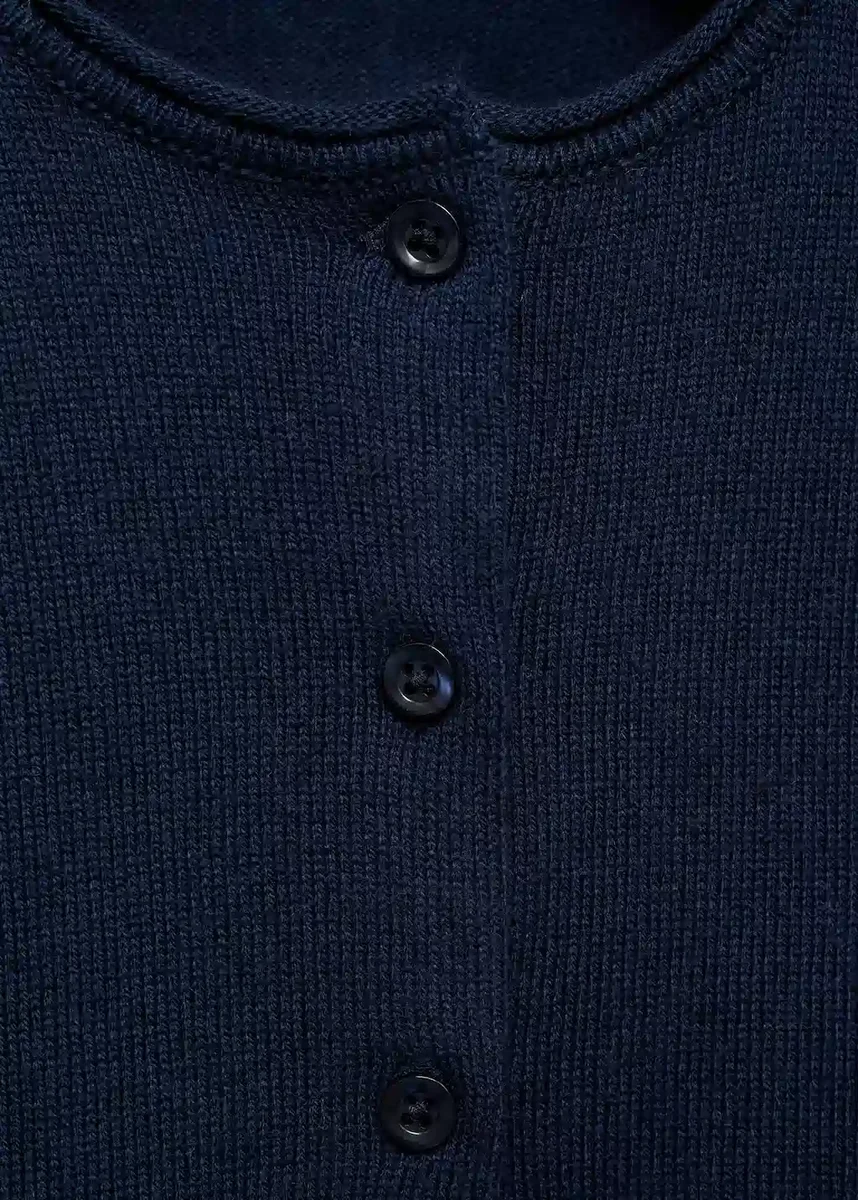 Bavlněná tkanina. Pletená tkanina. Rovný střih. Kulatý výstřih. Dlouhé rukávy. Zapínání na knoflíky vpředu. Zpátky do školy.