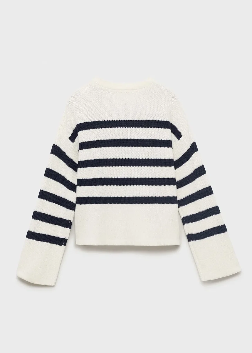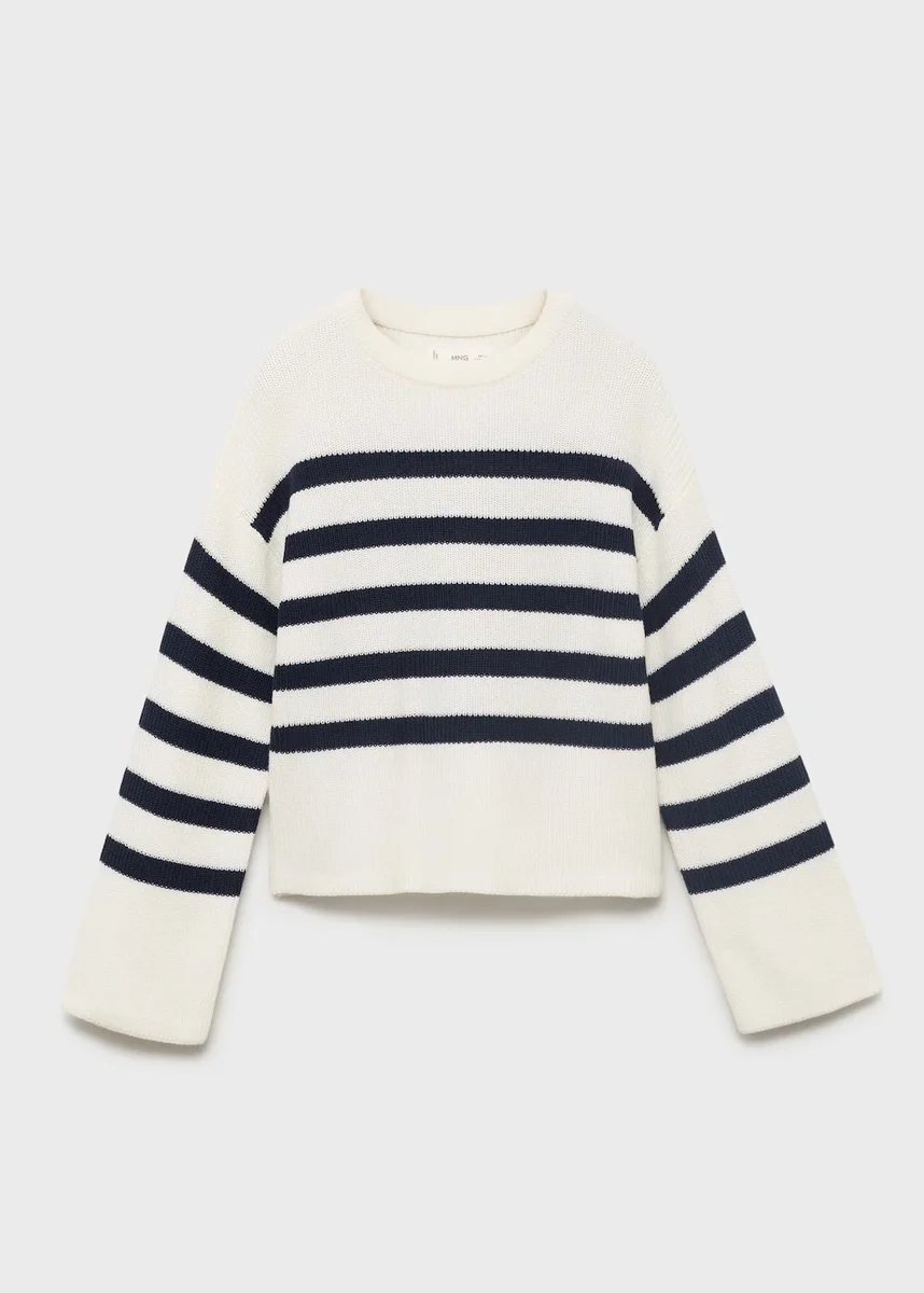 100% bavlna. Pletená látka. Pruhovaný vzor. Rovný střih. Kulatý výstřih. Dlouhé rukávy.