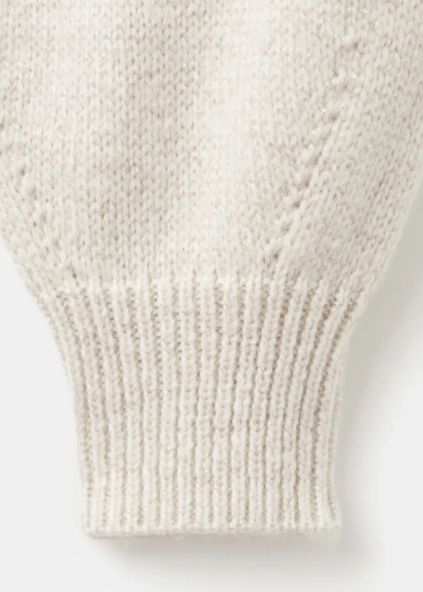 Lurexová tkanina. Pletená tkanina. Zářivý design. Kulatý výstřih. Dlouhé rukávy. Zapínání na knoflíky vpředu. Žebrovaný výstřih, manžety a lem. Kolekce Party. Vánoční kolekce