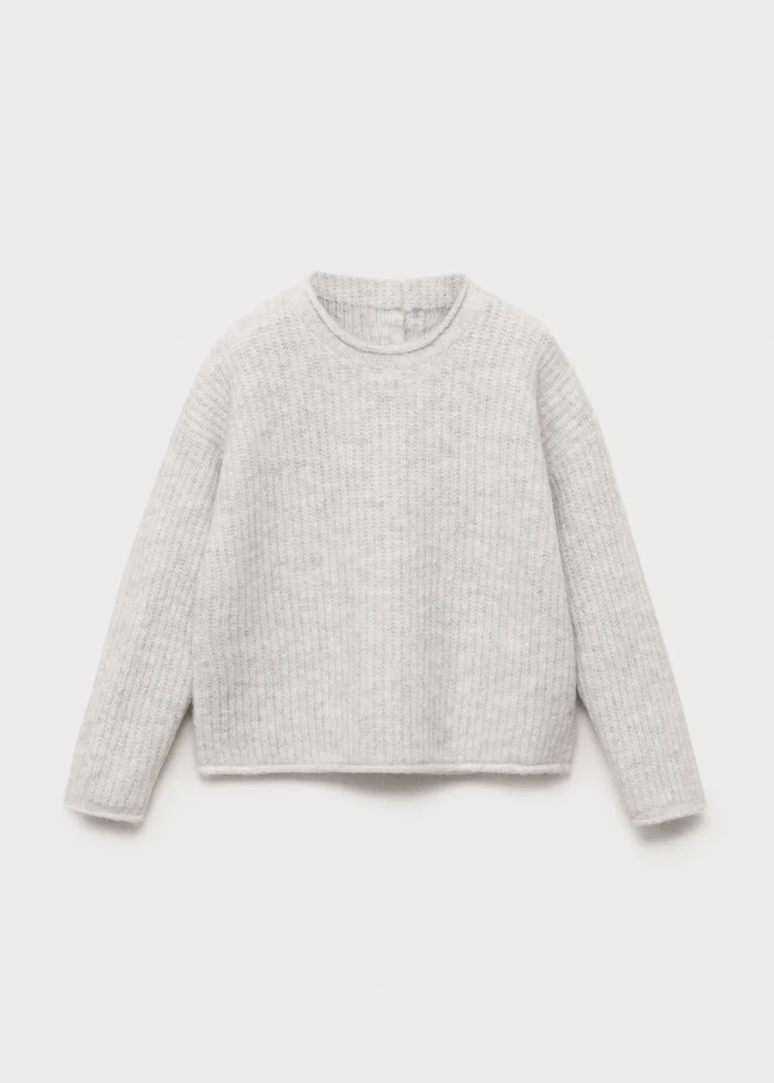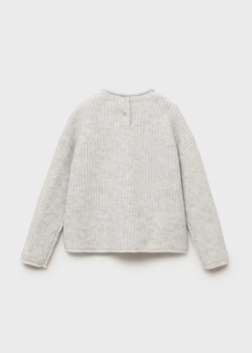 Pletená látka. Žebrovaný design. Rovný střih. Kulatý výstřih se zapínáním na knoflíky. Dlouhé rukávy.