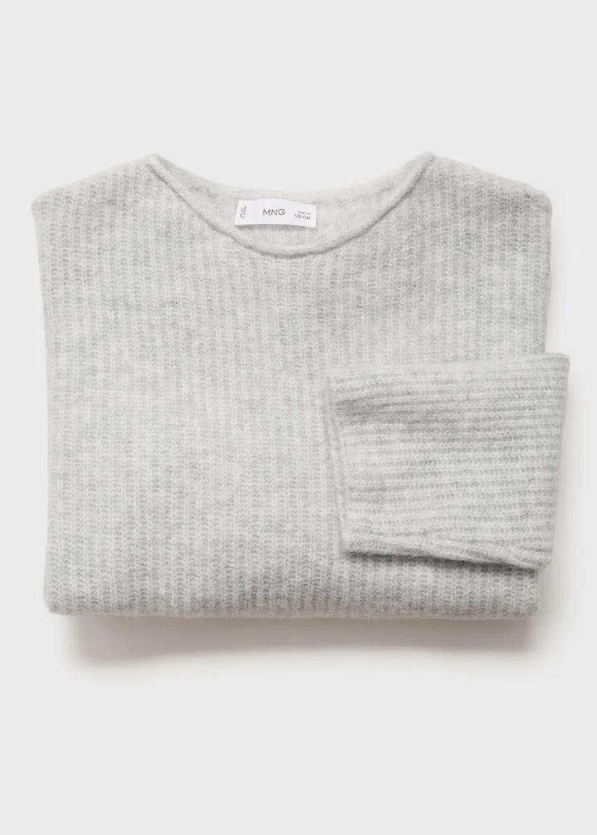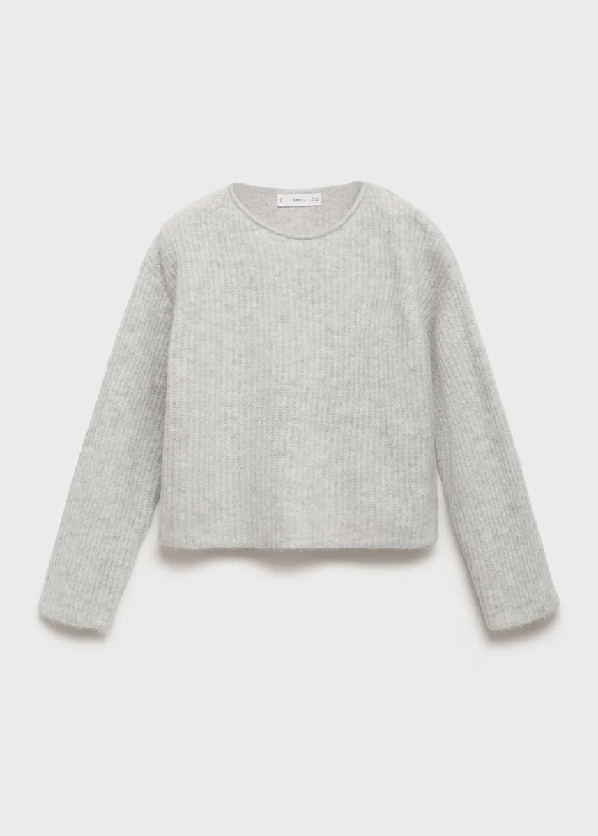 Pletená látka. Žebrovaná pletenina. Rovný střih. Jednoduchý design. Kulatý výstřih s žebrovaným lemem. Dlouhý rukáv