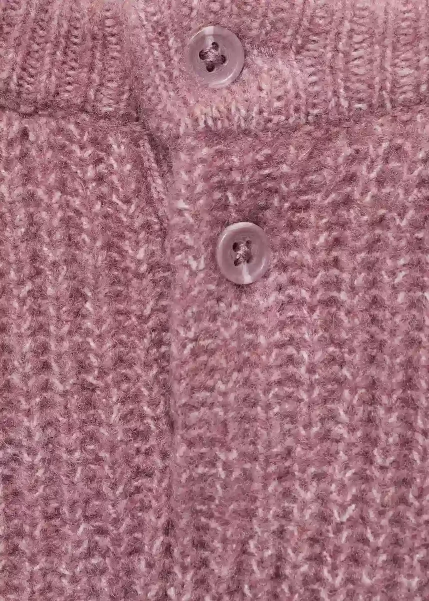Pletená látka. Žebrovaná pletenina. Oversize střih. Kulatý výstřih. Dlouhé rukávy. Zapínání na knoflíky vzadu.