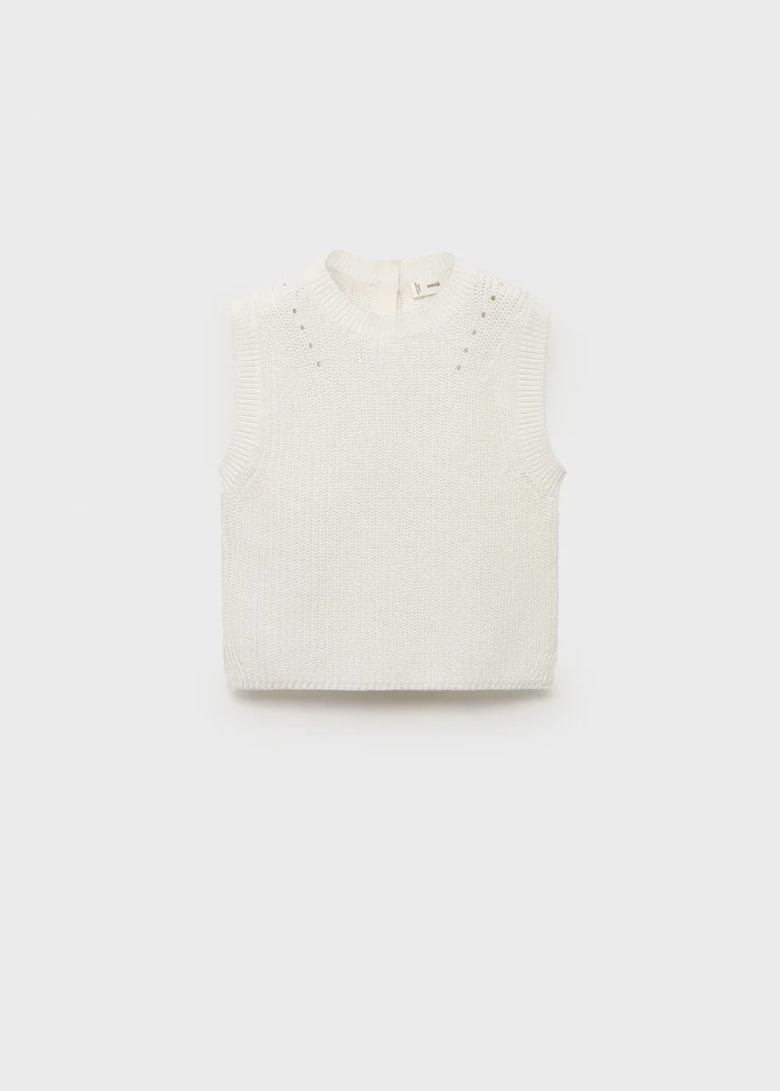 100 % bavlna. Pletená látka. Rovný střih. Kulatý výstřih. Bez rukávů. Zapínání na knoflíky na zadní straně.