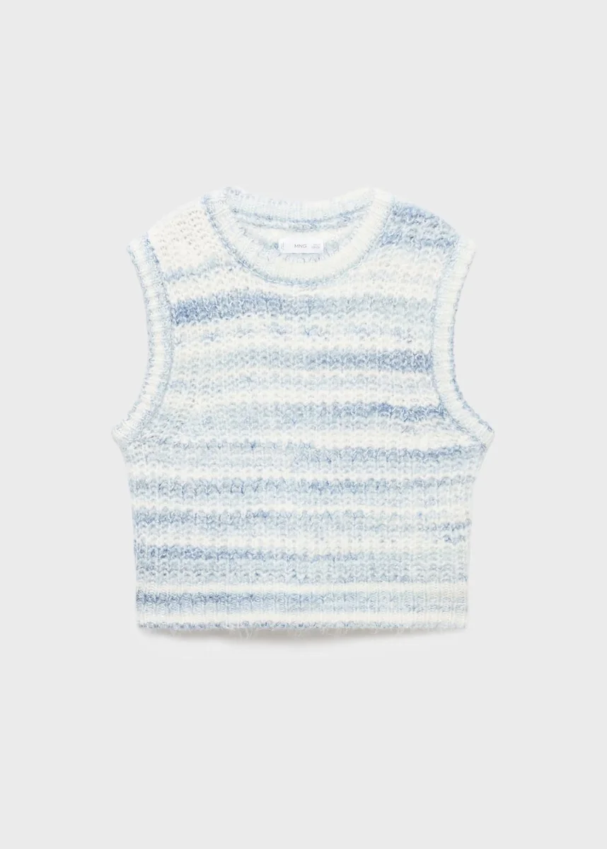 Středně silná pletenina. Pruhovaný vzor. Rovný střih. Kulatý výstřih. Bez rukávů. Black Friday
