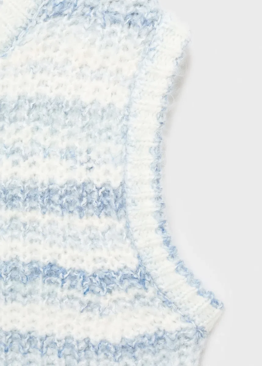 Středně silná pletenina. Pruhovaný vzor. Rovný střih. Kulatý výstřih. Bez rukávů. Black Friday.