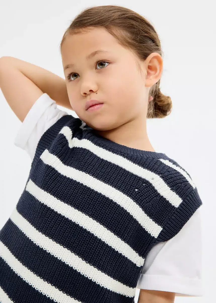 100 % bavlna. Pletená tkanina. Rovný střih. Pruhovaný design. Kulatý výstřih. Bez rukávů. Zapínání na knoflíky vzadu. Black Friday