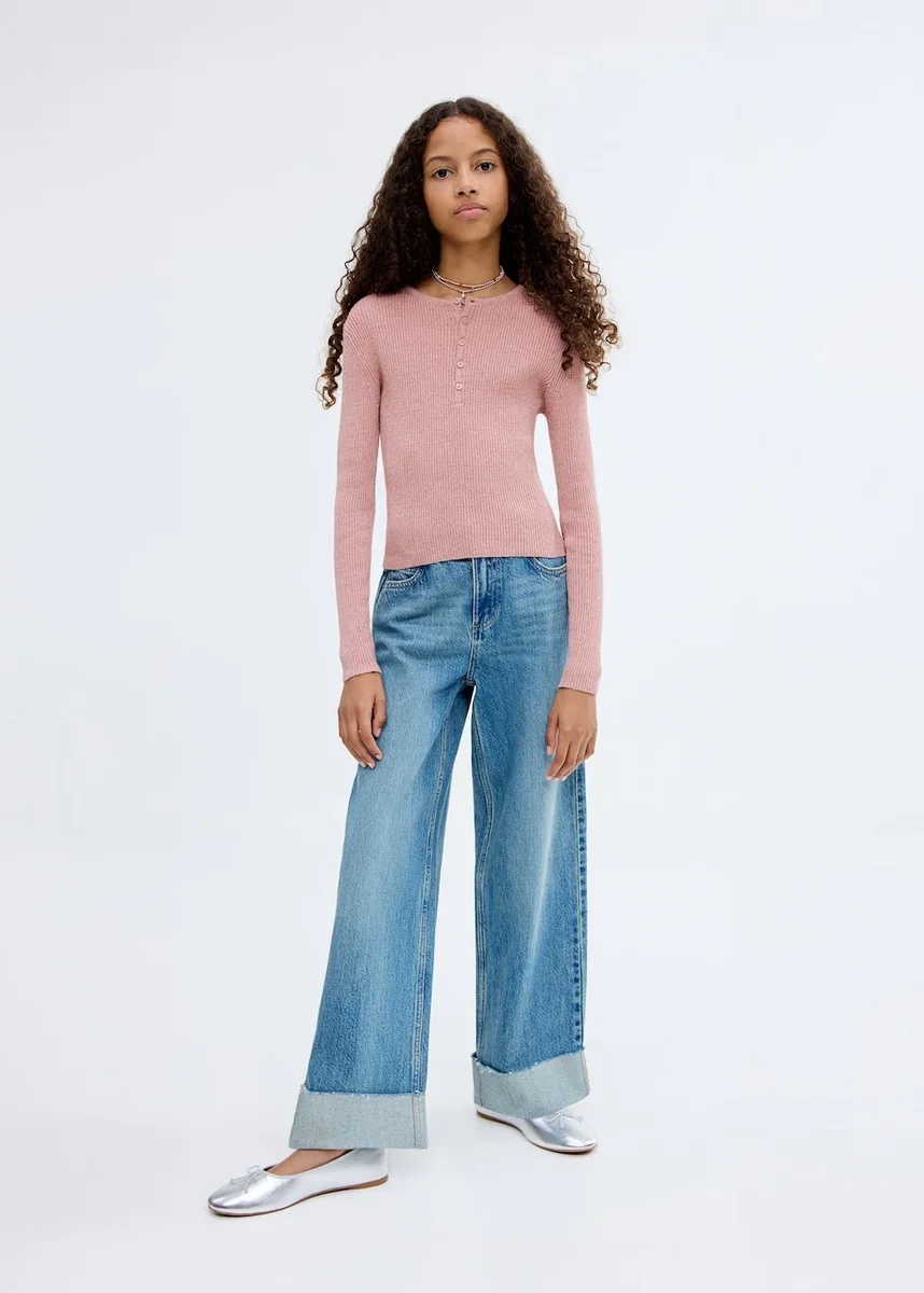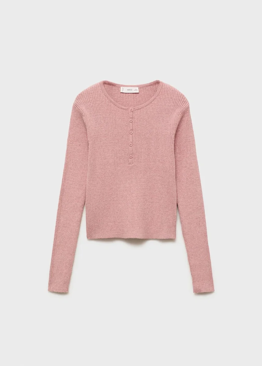 100% bavlna. Žebrovaný úplet. Rovný střih. Zaoblený výstřih se zapínáním na knoflíky. Dlouhé rukávy.