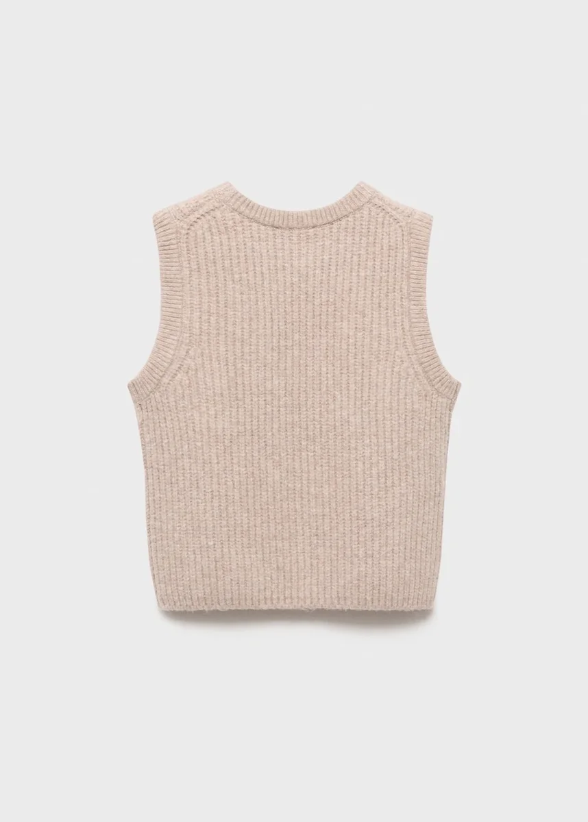 Žebrovaná pletenina. Pletenina. Rovný střih. Kulatý výstřih. Bez rukávů.