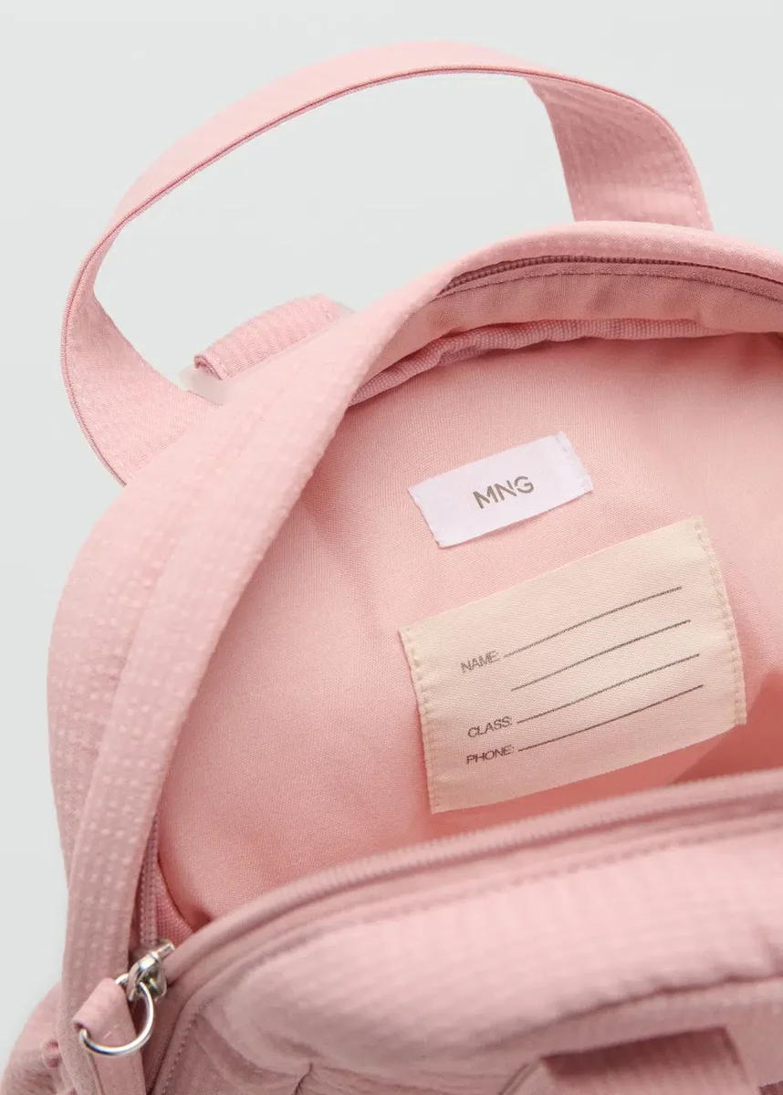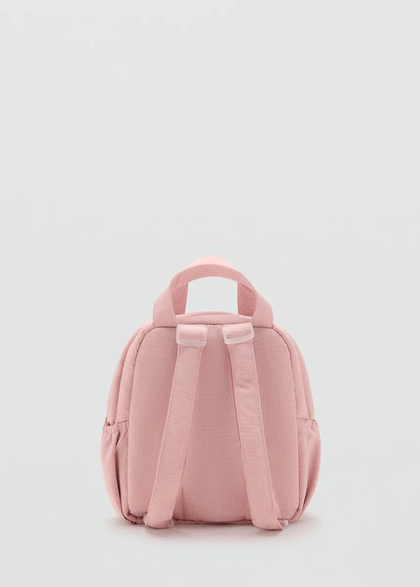 Batoh. Ozdobný detail. Ozdoba s baletním motivem. Dvě dlouhá ucha. Dvě krátká ucha. Dvě boční kapsy. Přední kapsa na zip. Zapínání na zip. Štítek pro osobní údaje. Black Friday.