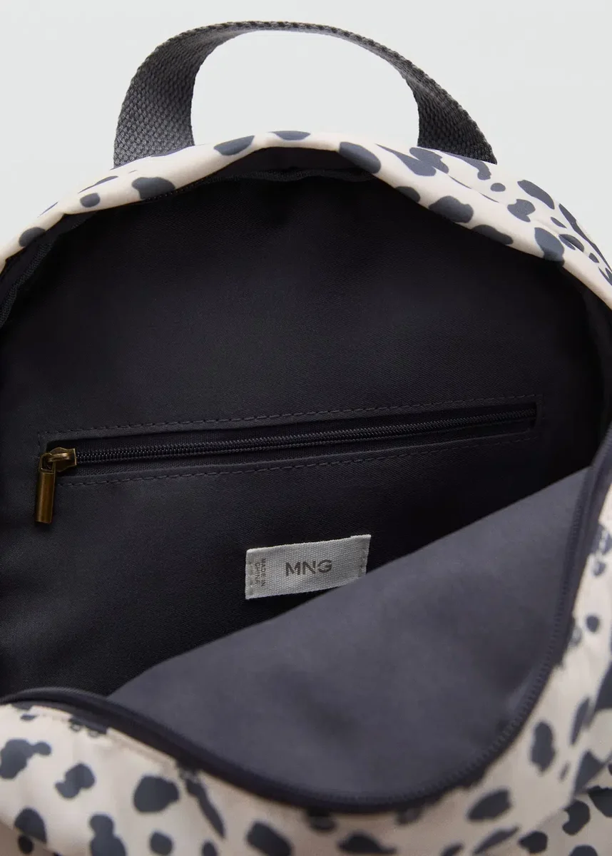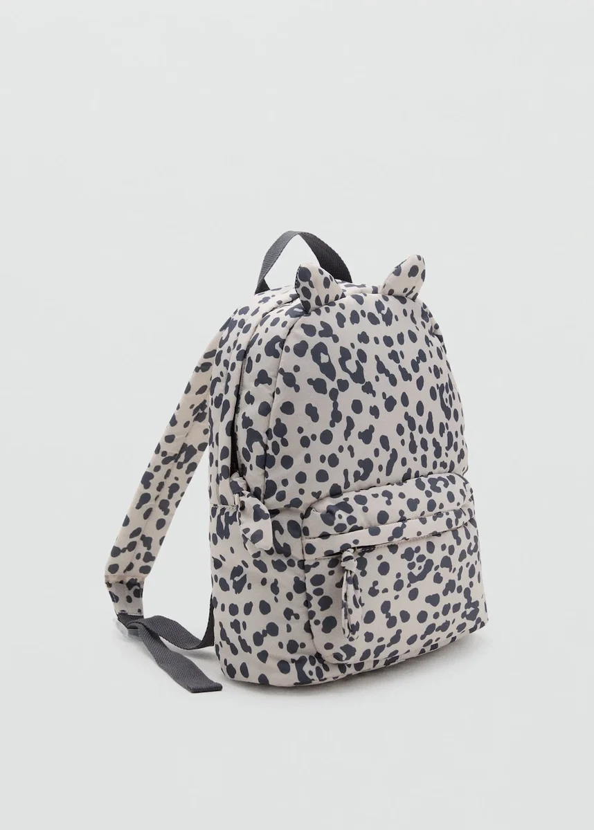 Batoh. Látka s zvířecím potiskem. Design s ušima. Kapsa na přední straně. Zapínání na zip. Dvě nastavitelné rukojeti. Ladící pouzdro. Black Friday.